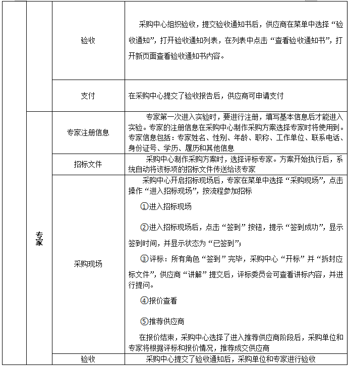 6、專家評(ping)標(biao)(biao):專家注冊信息、資質申(shen)請、招標(biao)(biao)文件、采購(gou)現(xian)場、驗收