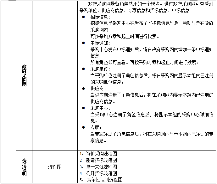 7、政(zheng)府采(cai)購(gou)網:各角色(se)共用的一個模(mo)塊。通過政(zheng)府采(cai)購(gou)網可查看到采(cai)購(gou)單位、供應商信(xin)息(xi)、專(zhuan)家信(xin)息(xi)和招標(biao)信(xin)息(xi)、中標(biao)信(xin)息(xi)。