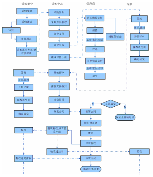4、采(cai)(cai)(cai)購(gou)(gou)活動(dong)由采(cai)(cai)(cai)購(gou)(gou)單位發起(qi),根據采(cai)(cai)(cai)購(gou)(gou)目錄制(zhi)(zhi)定采(cai)(cai)(cai)購(gou)(gou)預(yu)算、采(cai)(cai)(cai)購(gou)(gou)計劃(hua)、采(cai)(cai)(cai)購(gou)(gou)需(xu)求建立采(cai)(cai)(cai)購(gou)(gou)任務。由采(cai)(cai)(cai)購(gou)(gou)中心(xin)組織并發布采(cai)(cai)(cai)購(gou)(gou)信(xin)息,供應(ying)商通過(guo)采(cai)(cai)(cai)購(gou)(gou)信(xin)息前(qian)來購(gou)(gou)買標(biao)書、制(zhi)(zhi)作(zuo)采(cai)(cai)(cai)購(gou)(gou)響(xiang)應(ying)文件(jian)、投遞標(biao)書、交納保證金、參加(jia)標(biao)前(qian)會和踏勘、開(kai)標(biao)前(qian)提交質(zhi)疑文件(jian)