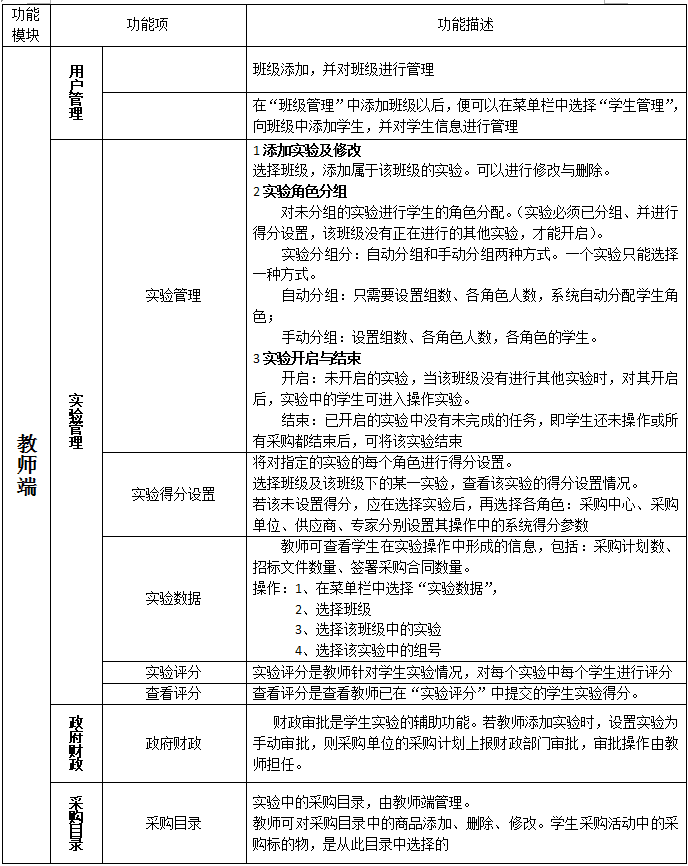 2、實(shi)驗由教師(shi)創建并設(she)置(zhi),學(xue)(xue)生分(fen)別扮(ban)演了采購(gou)活(huo)動(dong)(dong)(dong)(dong)(dong)中的(de)采購(gou)單(dan)位、采購(gou)中心(xin)、供應商、專家四種角(jiao)(jiao)(jiao)色(se)(se)。實(shi)驗分(fen)組(zu)(zu)分(fen):自動(dong)(dong)(dong)(dong)(dong)分(fen)組(zu)(zu)和手動(dong)(dong)(dong)(dong)(dong)分(fen)組(zu)(zu)兩種方式(shi)。自動(dong)(dong)(dong)(dong)(dong)分(fen)組(zu)(zu):只需要(yao)設(she)置(zhi)組(zu)(zu)數(shu)、各角(jiao)(jiao)(jiao)色(se)(se)人(ren)數(shu),系(xi)統自動(dong)(dong)(dong)(dong)(dong)分(fen)配(pei)學(xue)(xue)生角(jiao)(jiao)(jiao)色(se)(se);手動(dong)(dong)(dong)(dong)(dong)分(fen)組(zu)(zu):設(she)置(zhi)組(zu)(zu)數(shu)、各角(jiao)(jiao)(jiao)色(se)(se)人(ren)數(shu),各角(jiao)(jiao)(jiao)色(se)(se)的(de)學(xue)(xue)生。
