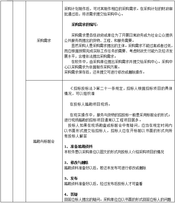采(cai)購單位(wei)信息(xi)、采(cai)購預算、采(cai)購計劃(hua)、采(cai)購需(xu)求、踏勘(kan)與(yu)標前會、采(cai)購現場、查(cha)看(kan)定標、采(cai)購合同(tong)、驗收(shou)