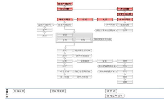 業務流程:CIF+L/C,CIF+/D/A,CIF+D/P,CIF+T/T Before shipment CIF+T/T After shipment FOB+L/C,FOB+/D/A,FOB+D/P,FOB+T/T Before shipment FOB+T/T After shipment CFR+L/C,CFR+/D/A,CFR+D/P,CFR+T/T Before shipment CFR+T/T After shipment 業務流程:在(zai)這里填寫和(he)查(cha)看(kan)所需要的(de)單(dan)據。直接可在(zai)流程圖中表現(xian)。查(cha)看(kan)的(de)單(dan)據分填寫的(de)單(dan)據和(he)收到的(de)單(dan)據
