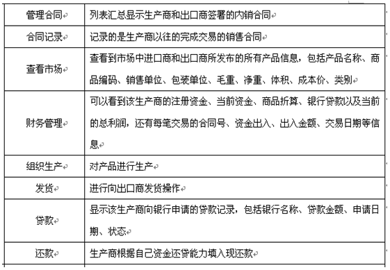 7、可以配置進(jin)口(kou)商(shang)(shang)、出(chu)(chu)口(kou)商(shang)(shang)、進(jin)口(kou)地(di)銀(yin)行(xing)(xing)、出(chu)(chu)口(kou)地(di)銀(yin)行(xing)(xing)、國稅局(ju)(ju)、海(hai)關、商(shang)(shang)檢局(ju)(ju)、保(bao)(bao)險公司(si)、貨(huo)代公司(si)、外匯管(guan)理局(ju)(ju)等相關參數和業務(wu),在實訓(xun)過程中可以分(fen)組(zu)、分(fen)角色進(jin)行(xing)(xing)互動、交互式訓(xun)練。角色扮演:出(chu)(chu)口(kou)商(shang)(shang)、進(jin)口(kou)商(shang)(shang)、生產商(shang)(shang)(工(gong)廠)、進(jin)口(kou)銀(yin)行(xing)(xing)、出(chu)(chu)口(kou)銀(yin)行(xing)(xing)、保(bao)(bao)險公司(si)、商(shang)(shang)檢局(ju)(ju)、海(hai)關、外匯管(guan)理局(ju)(ju)、貨(huo)代、國稅局(ju)(ju)