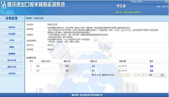 實驗(yan)信息(xi)、任務流程、文件夾、收(shou)藏夾、基礎數據和在線交流可參考(kao)外貿公司中相同的模塊。