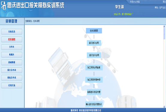 3、教師(shi)端(duan)可以有針對性(xing)地采取任(ren)(ren)務(wu)驅動(dong),設置不(bu)同貿易方式的(de)實驗。學(xue)生(sheng)根據教師(shi)設置的(de)實驗信(xin)息(xi)完(wan)成相(xiang)關任(ren)(ren)務(wu)。學(xue)生(sheng)端(duan)設置由多個(ge)(ge)角(jiao)色(se)。學(xue)生(sheng)可以同時扮(ban)演不(bu)同個(ge)(ge)角(jiao)色(se),獨(du)立完(wan)成任(ren)(ren)務(wu)。也(ye)可以多個(ge)(ge)學(xue)生(sheng)分(fen)別扮(ban)演不(bu)同角(jiao)色(se),共同完(wan)成相(xiang)關任(ren)(ren)務(wu)。