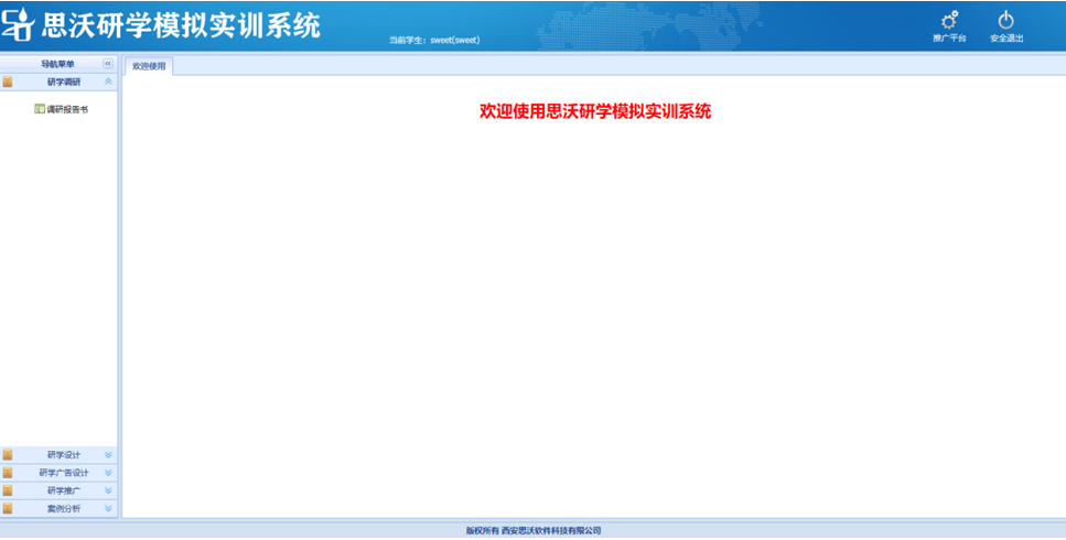 思沃研學(xue)(xue)(xue)(xue)(xue)(xue)(xue)(xue)模(mo)(mo)擬(ni)實(shi)訓(xun)系統(tong)分(fen)為管理(li)員,教師,學(xue)(xue)(xue)(xue)(xue)(xue)(xue)(xue)生三(san)種角色,功能包括推廣(guang)平臺、首(shou)頁,知識(shi)庫,研學(xue)(xue)(xue)(xue)(xue)(xue)(xue)(xue)推廣(guang),圖文結合廣(guang)告,媒(mei)體推送廣(guang)告,研學(xue)(xue)(xue)(xue)(xue)(xue)(xue)(xue)調研,研學(xue)(xue)(xue)(xue)(xue)(xue)(xue)(xue)設計等(deng)。學(xue)(xue)(xue)(xue)(xue)(xue)(xue)(xue)生通(tong)過模(mo)(mo)擬(ni)實(shi)訓(xun)體驗(yan)從研學(xue)(xue)(xue)(xue)(xue)(xue)(xue)(xue)內容(rong)調研、研學(xue)(xue)(xue)(xue)(xue)(xue)(xue)(xue)路線(xian)設計、研學(xue)(xue)(xue)(xue)(xue)(xue)(xue)(xue)核心價(jia)值(zhi)發掘、研學(xue)(xue)(xue)(xue)(xue)(xue)(xue)(xue)媒(mei)體網絡推廣(guang)等(deng)一系列工作內容(rong)。 研學(xue)(xue)(xue)(xue)(xue)(xue)(xue)(xue)軟件包含案(an)例(li)分(fen)析,點評,研學(xue)(xue)(xue)(xue)(xue)(xue)(xue)(xue)線(xian)路設計,團隊(dui)類(lei)(lei)型(xing)(xing),機型(xing)(xing),小交通(tong)標(biao)(biao)準,出入境(jing)口岸,匯率維護(hu),酒(jiu)店(dian)類(lei)(lei)型(xing)(xing),研學(xue)(xue)(xue)(xue)(xue)(xue)(xue)(xue)類(lei)(lei)型(xing)(xing)知識(shi)庫類(lei)(lei)型(xing)(xing),案(an)例(li)類(lei)(lei)型(xing)(xing),航空公(gong)司,線(xian)路區域,團隊(dui)等(deng)級(ji),住宿(su)標(biao)(biao)準,大交通(tong)標(biao)(biao)準,門票標(biao)(biao)準,餐飲標(biao)(biao)準,導游證(zheng)類(lei)(lei)別,酒(jiu)店(dian)等(deng)級(ji),客戶(hu)(hu)行業分(fen)類(lei)(lei),客戶(hu)(hu)等(deng)級(ji)分(fen)類(lei)(lei),客戶(hu)(hu)關系深度,地接(jie)車(che)等(deng)級(ji),客戶(hu)(hu)接(jie)受程度,國家維護(hu),省份維護(hu),城市(shi)維護(hu),景點類(lei)(lei)型(xing)(xing),學(xue)(xue)(xue)(xue)(xue)(xue)(xue)(xue)生可以進行系統(tong)的模(mo)(mo)擬(ni)學(xue)(xue)(xue)(xue)(xue)(xue)(xue)(xue)習。