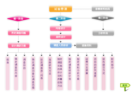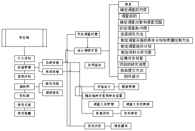 學生以教師(shi)設置的(de)實驗要求為目標,以市(shi)場調(diao)查公司總經理的(de)身份負責市(shi)場調(diao)查的(de)整個過程(cheng),根據系統的(de)操作向導按步驟、階段性完成實驗任(ren)務。確定調(diao)研(yan)課(ke)題,設計調(diao)研(yan)方案(an)、調(diao)研(yan)問卷、抽樣方案(an),培訓調(diao)查人員,搜(sou)集(ji)并分析資(zi)料。