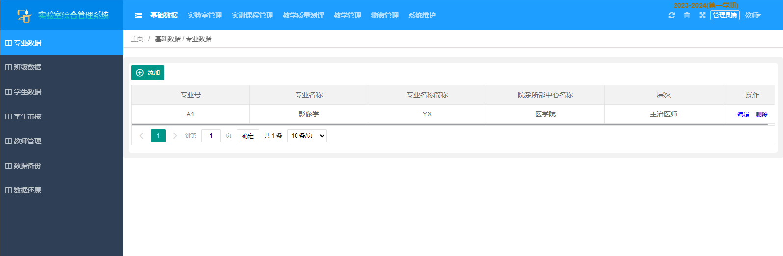基礎信息(專(zhuan)業數(shu)據(ju),班(ban)級數(shu)據(ju),學生數(shu)據(ju),學生審核(he),教師管理,數(shu)據(ju)備份,數(shu)據(ju)還原(yuan))